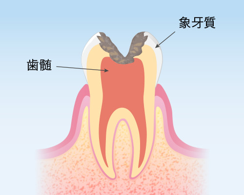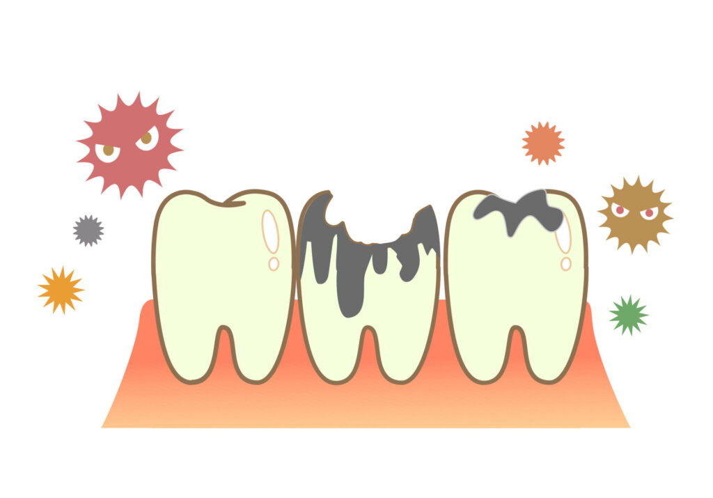 むき出しになった歯は、むし歯菌の格好の餌食。あっという間に進行し、神経にまで達してしまう可能性も。